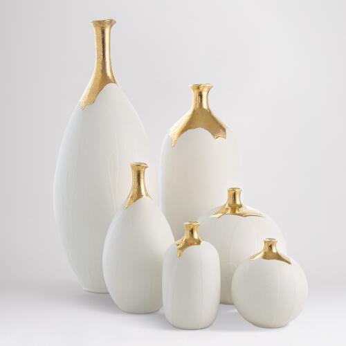 Dipped Golden Crackle/White Vase
