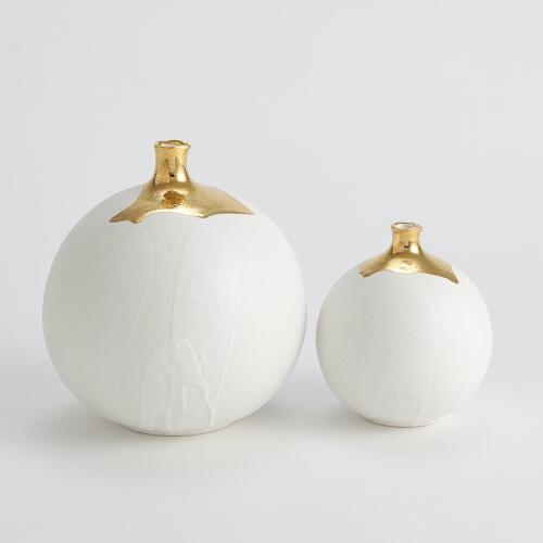 Dipped Golden Crackle/White Sphere Vase