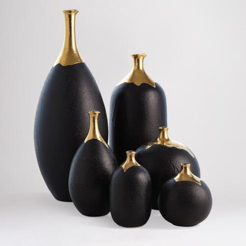 Dipped Golden Crackle/Black Vase