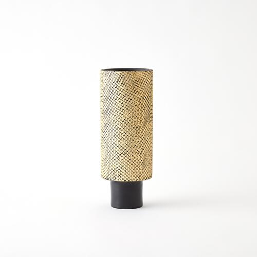Java Footed Vase-Matte Black/Gold Metallic