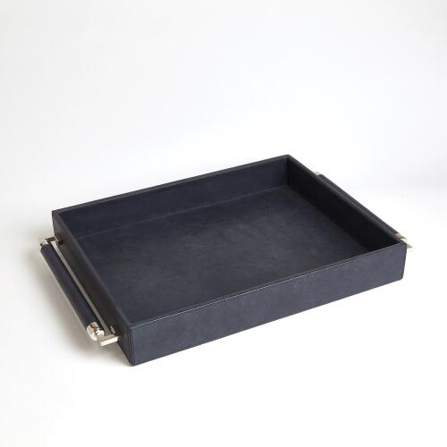 Wrapped Handle Tray-Black Leather