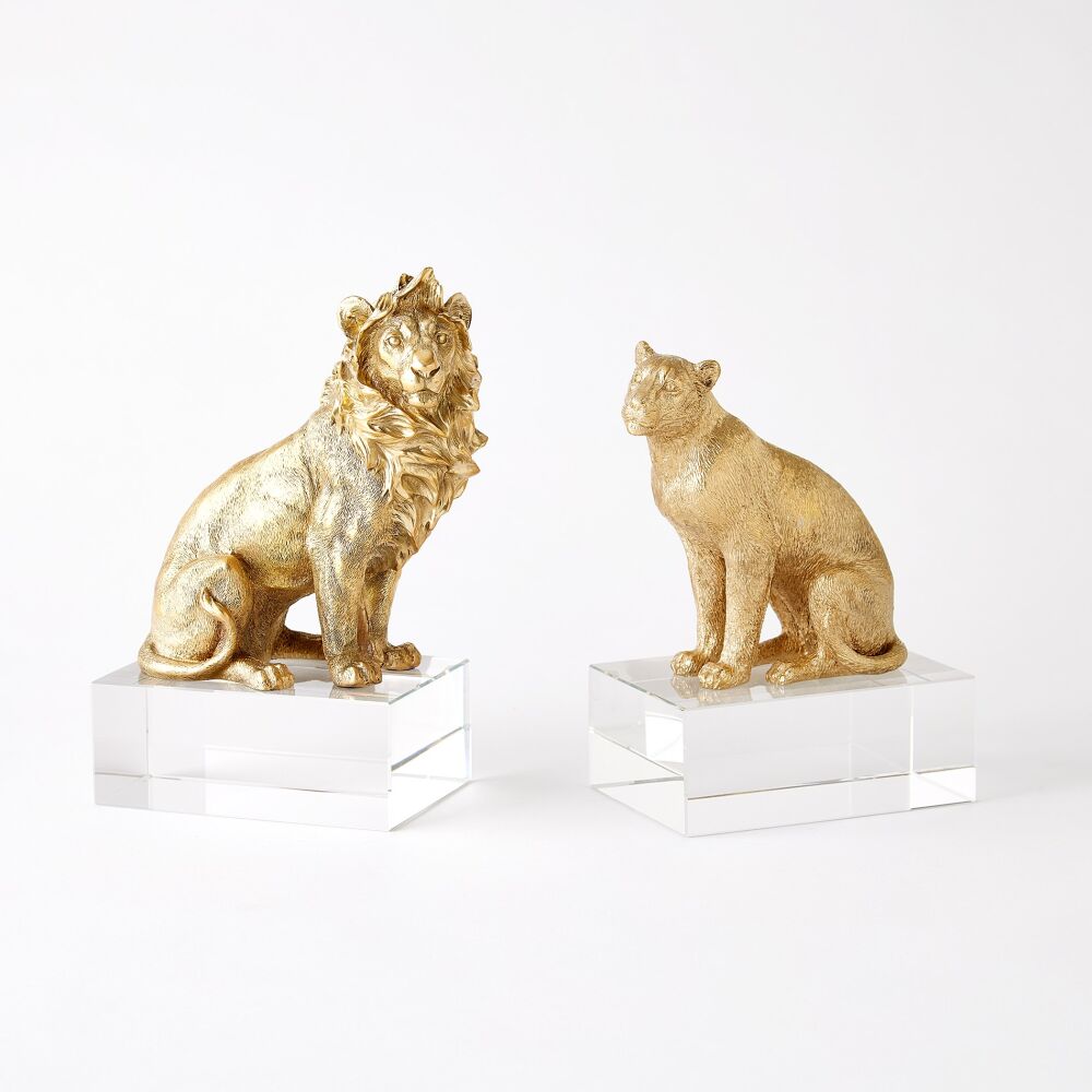 Lion & Lioness Sculpture-Brass/Crystal
